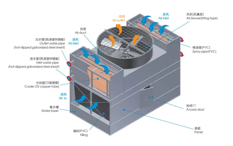 無錫沃信流體閉式復合流冷卻塔采用先進的工業設計,在工業應用中不僅高效節能而且環保。無錫沃信流體閉式復合流冷卻塔以其精心的選材,精湛的設計,使設備在運行和維護保養方面具有更優秀的品質: